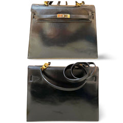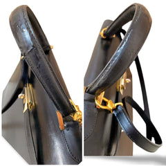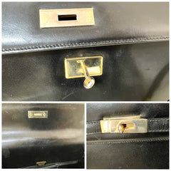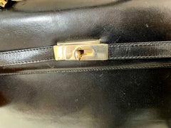 80's vintage BALLY black boxcalf leather kelly bag. Classic masterpiece handbag.