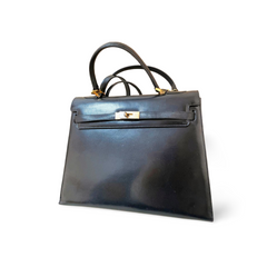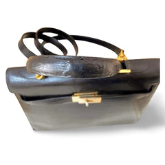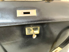 This is one of the oldest vintage bags from Bally back in the 80's, classic kelly bag in black tone boxcalf leather.