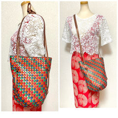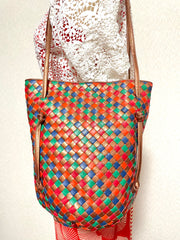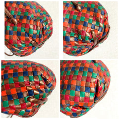 Gorgeous and bright color in bronze, red, orange, green and blue lamb leather intrecciato will make you look absolutely stunning in your outfit!