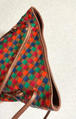 Vintage Bottega Veneta bronze and multicolor intrecciato shoulder bag, hobo bucket bag with kiss lock closure pocket. 050809y