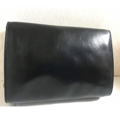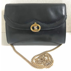 1980s. Vintage CELINE genuine black leather shoulder bag with gold and silver tone triomphe logo motif at front. Rare Celine leather bag.