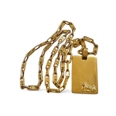 1990s. Vintage Celine golden chain necklace with logo embossed plate. Classic jewelry.