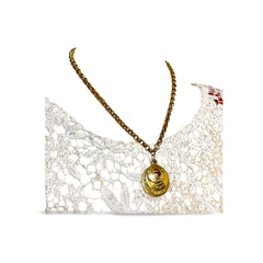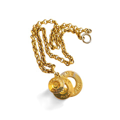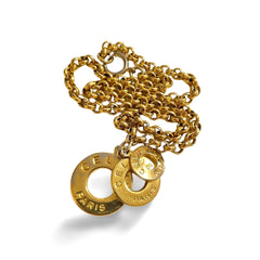 Vintage Celine golden triple round hoop charm necklace. Classic jewelry piece back in the era.