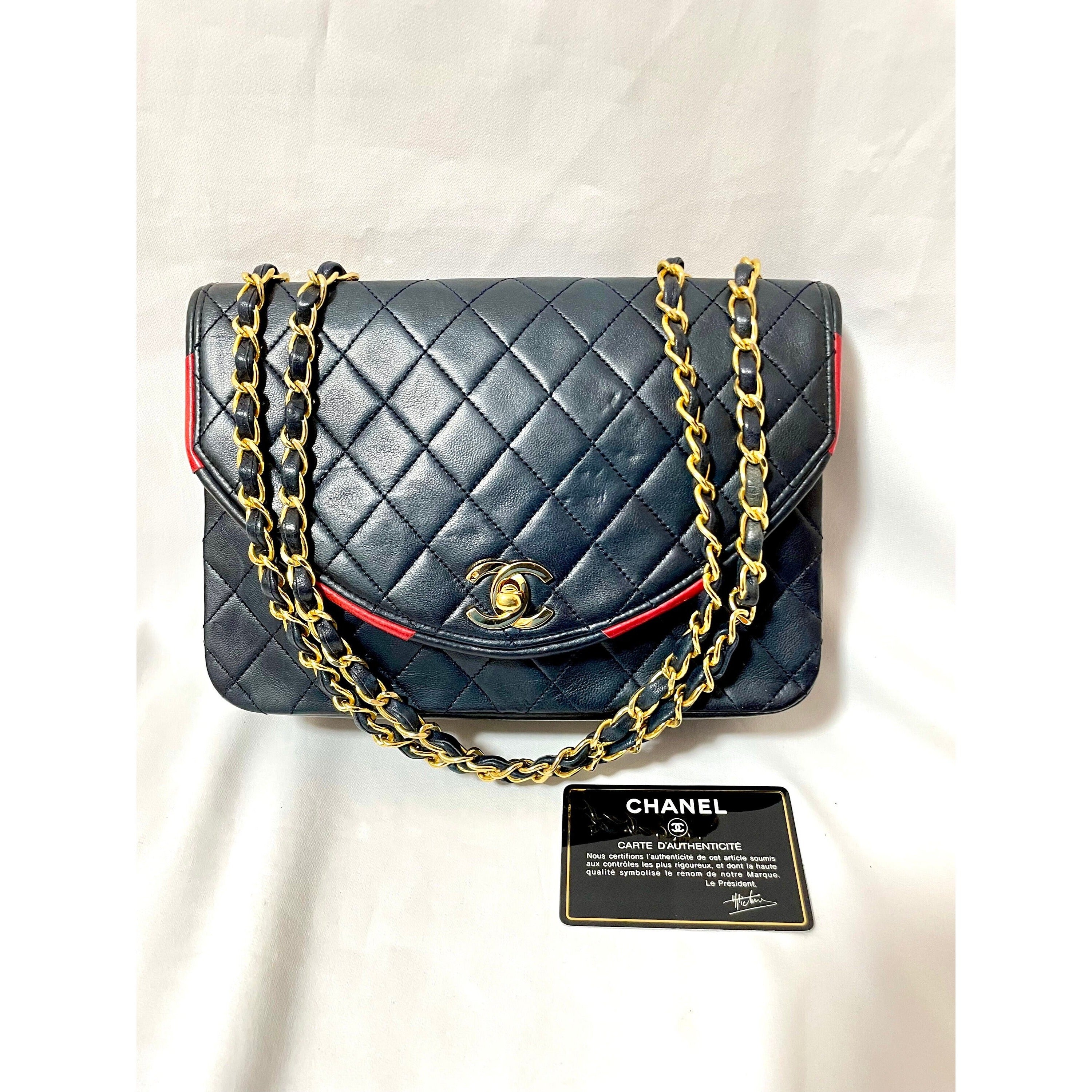 Introducing a very rare vintage CHANEL dark navy purse with golden chain strap from the 80's.