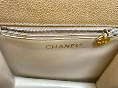 1990s. Vintage CHANEL beige brown caviarskin waist purse, hip bag, fanny pack with golden CC mark. Classic 2.55 design.
