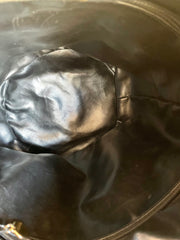 Introducing one of the most popular bags along with 2.55 bag from CHANEL back in the early 90's, a classic hobo bucket and drum shape black lambskin shoulder purse with gold chain strap.