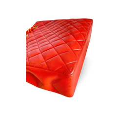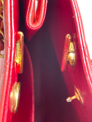 This is a vintage CHANEL red lambskin tote bag style chain shoulder bag from the 90's.
