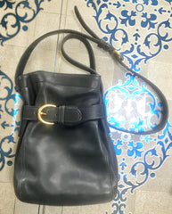 Genuine leather and simple hobo bucket hobo bag with golden buckle motif.