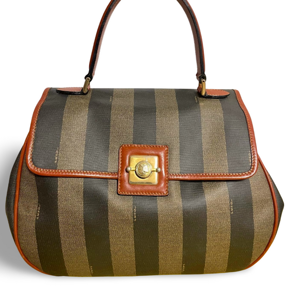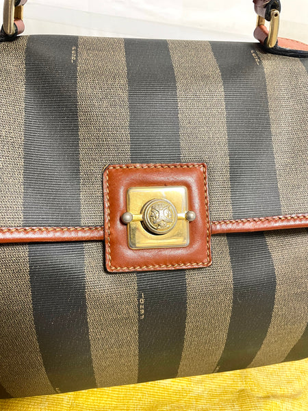 Classic purse in black and brown thick vertical stripe known as pecan pattern from FENDI.