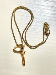 Vintage Givenchy golden chain necklace with g letter and crystal top. Classic jewelry that fits any occasion.
