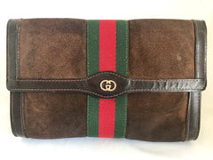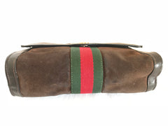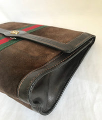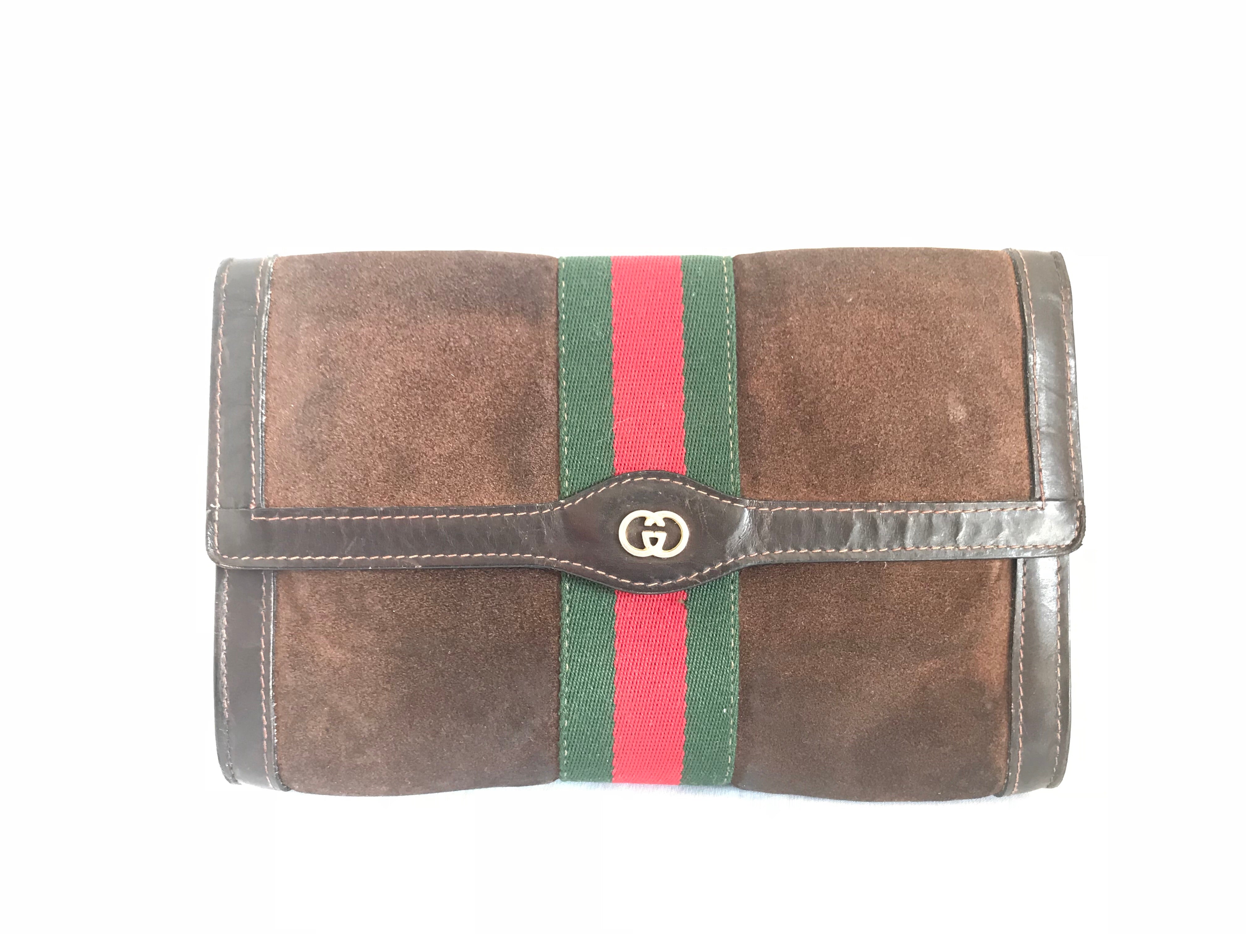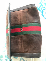 Genuine brown suede leather with its iconic green and red webbing line at center.