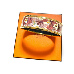 Vintage Hermes cloisonne enamel golden thick bangle, bracelet with birds and leaves. Must have beautiful jewelry.