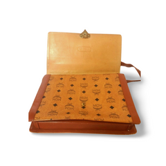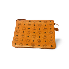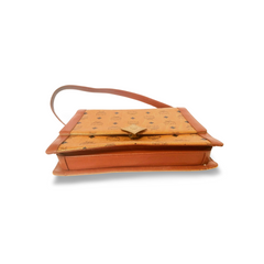 Featuring a gold tone star shape hardware with an MCM logo embossed on it.