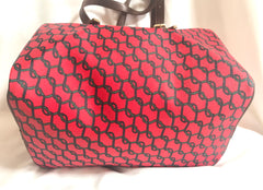 1980s. Vintage Roberta di Camerino red, green and navy duffle style purse with gold tone R logo charm. TALON zipper.