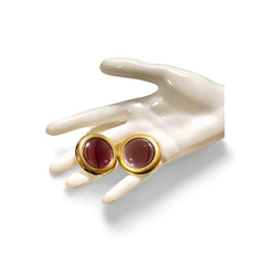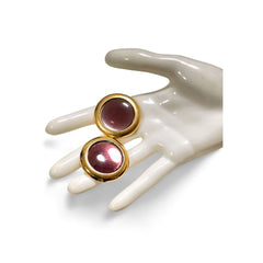 Vintage Yves Saint Laurent golden round earrings with pink gripoix glass. 060227ac1