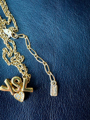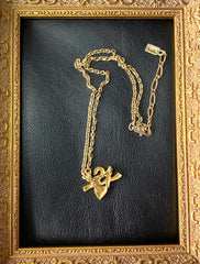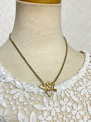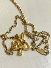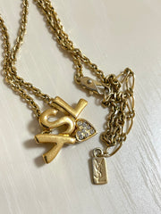 Vintage Yves Saint Laurent golden YSL logo and heart crystal necklace. Must have jewelry piece.